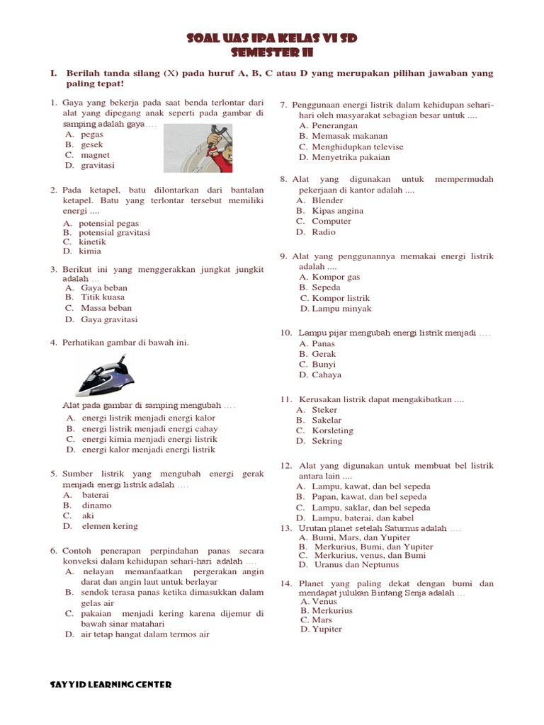 Soal Uts Ipa Kelas 6 Semester 2 Pdf from imgv2-2-f.scribdassets.com Bacalah doa sebelum mengerjakan soal! Semester 2 telah kita telah kita jalankan dan akan berakhir, oleh karena itu kita harus segera melakukan evaluasi, yaitu menyusun soal uas semester 2 (genap). Berikut bospedia memberikan soal uas ipa kelas 6 sd/mi. Download kumpulan soal penilaian tengah semester 2 pts genap kelas 1, 2, 3, 4, 5, 6 sd/mi tahun 2021 kurikulum 2013 klik disini *baru. Soal uas bahasa inggris kelas 4 semester 1 terbaru tahun sumber : Di bawah ini adalah nilai ulangan ipa siswa kelas vi : Berilah tanda silang (x) pada huruf a, b, c atau d yang merupakan pilihan jawaban yang paling tepat! Soal dan kunci ipa ukk kelas 6 (vi) sd uas ii seme.