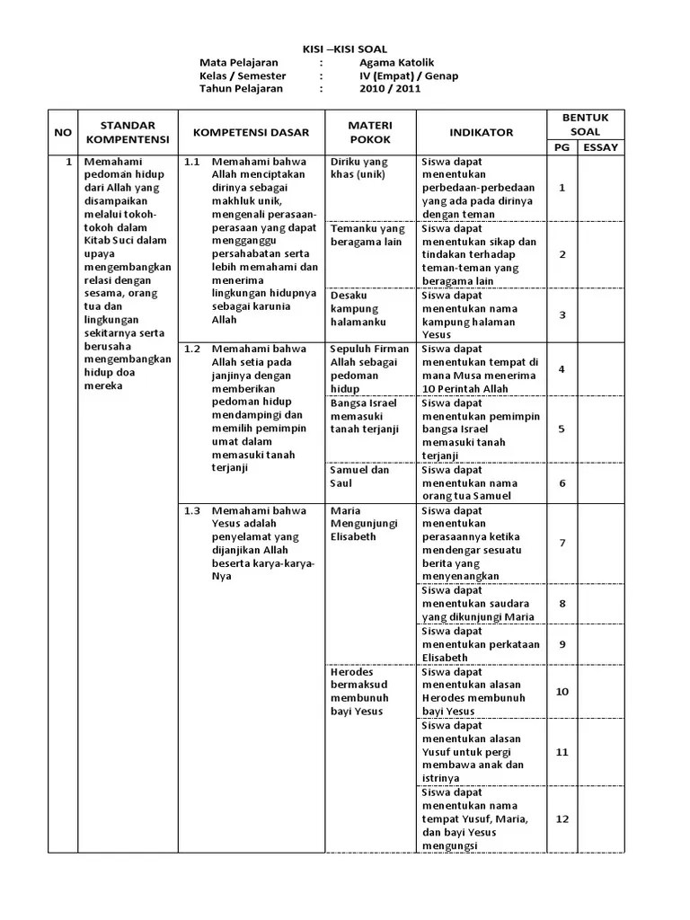 Pendidikan agama kristen jumlah soal : Tentunya bagi siswa yang menjalankan. Citra allah siswa dapat menjelaskan pengertian manusia sebagai citra allah berdasarkan kutipan kej. Kisi kisi pendidikan agama kristen tapel 2017 2018. Kristen dan budi pekerti kurikulum 2013 kelas 1 sekolah dasar semester ganjil. Mata pelajaran :pendidikan agama kristen (kurikulum 2013) . Sekolah dasar bentuk soal : Soal essay ips sd kelas 6. Standar kompetensi kompetensi dasar materi indikator nomor soal kunci jawaban bentuk soal Pendidikan agama kristen dan budi pekerti pada satuan. Pendidikan agama kristen & budi pekerti. Materi ujian pat agama kristen kelas 3 semester 2 disesuaikan dengan standar kisi kisi kurikulum 2013 revisi, beserta buku . Terimakasih telah mengunjungi situs kami dalam post artikel .
