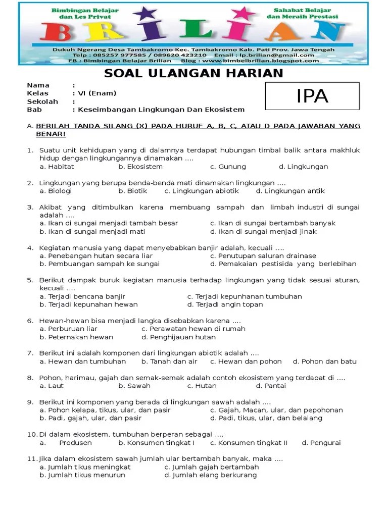 Pepohonan di halaman rumah dapat membuat udara menjadi. Belum banyak yang melakukan penelitian tentang asesmen soal hots berbasis rasch model pada pembelajaran ipa materi pencemaran lingkungan. Untuk mengerjakan soal no.1 dan 2 bacalah wacana di bawah ini dengan teliti! Topik limbah di lingkungan kerja. Play this game to review other. Keuntungan dari mendaur ulang limbah organik atau anorganik bagi lingkungan, kecuali … Tujuan pengelolaan lingkungan hidup terdapat pada pernyataan di bawah ini, kecuali …. Pengaruh kemampuan siswa menyelesaikan soal hots dan lingkungan sosial terhadap kreativitas siswa kelas xi kompetensi keahlian otomatisasi dan tata kelola . Pencemaran lingkungan berasal dari aktivitas manusia. Mencapai kelestarian hubungan manusia dengan lingkungan . Demikian instrumen penilaian berbasis soal hots pada siswa kelas vii materi pencemaran lingkungan layak diuji dalam skala terbatas. Meningkatnya polusi udara di bandung. Soal pilihan ganda materi lingkungan sehat dan tidak sehat + jawaban.